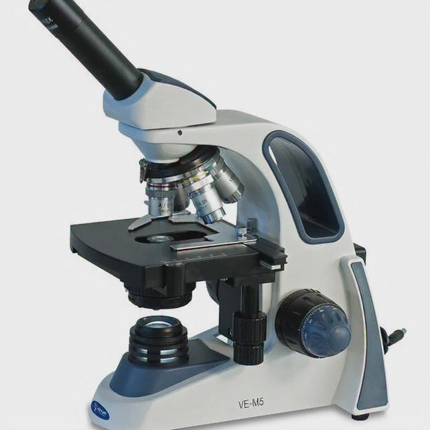 The VE-M5 microscope can fulfill all kinds of basic and advanced procedures. Its area of application is not limited to education, it can be applied in clinical laboratories for observation of blood samples, parasite identification and urinary sediment sample observation, due to its immersion objective. Includes a rear cable-winding reel for the power adapter. Recommended for educational use that does not require comprehensive observations such as viewing the basic elements of a cell, samples of plant tissues, protozoa, filamentous fungi, sperm, etc.